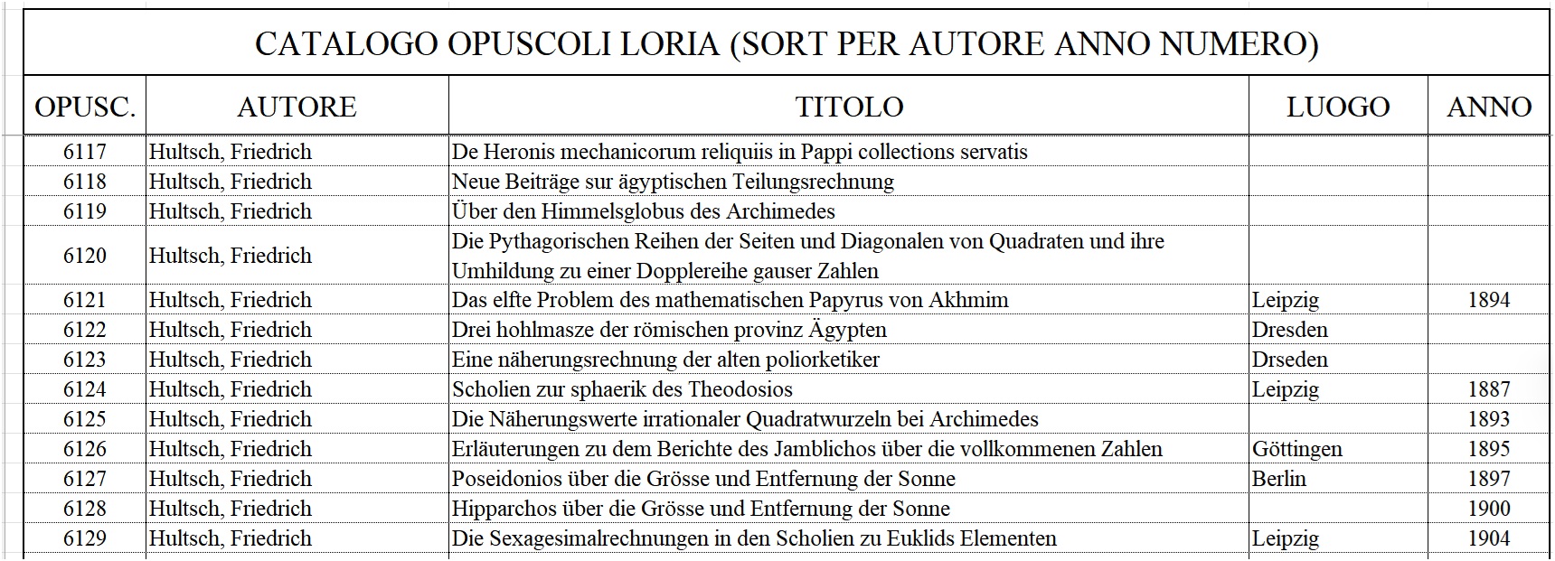 Il Fondo Loria comprende 14.463 opuscoli e estratti (di cui 187 firmati da Gino Loria).